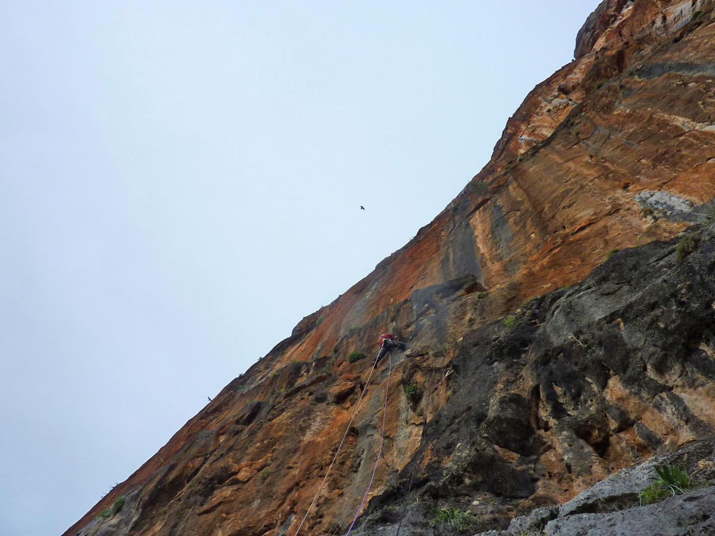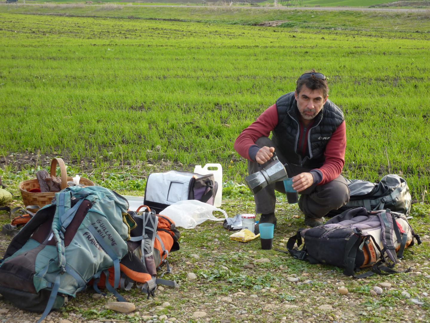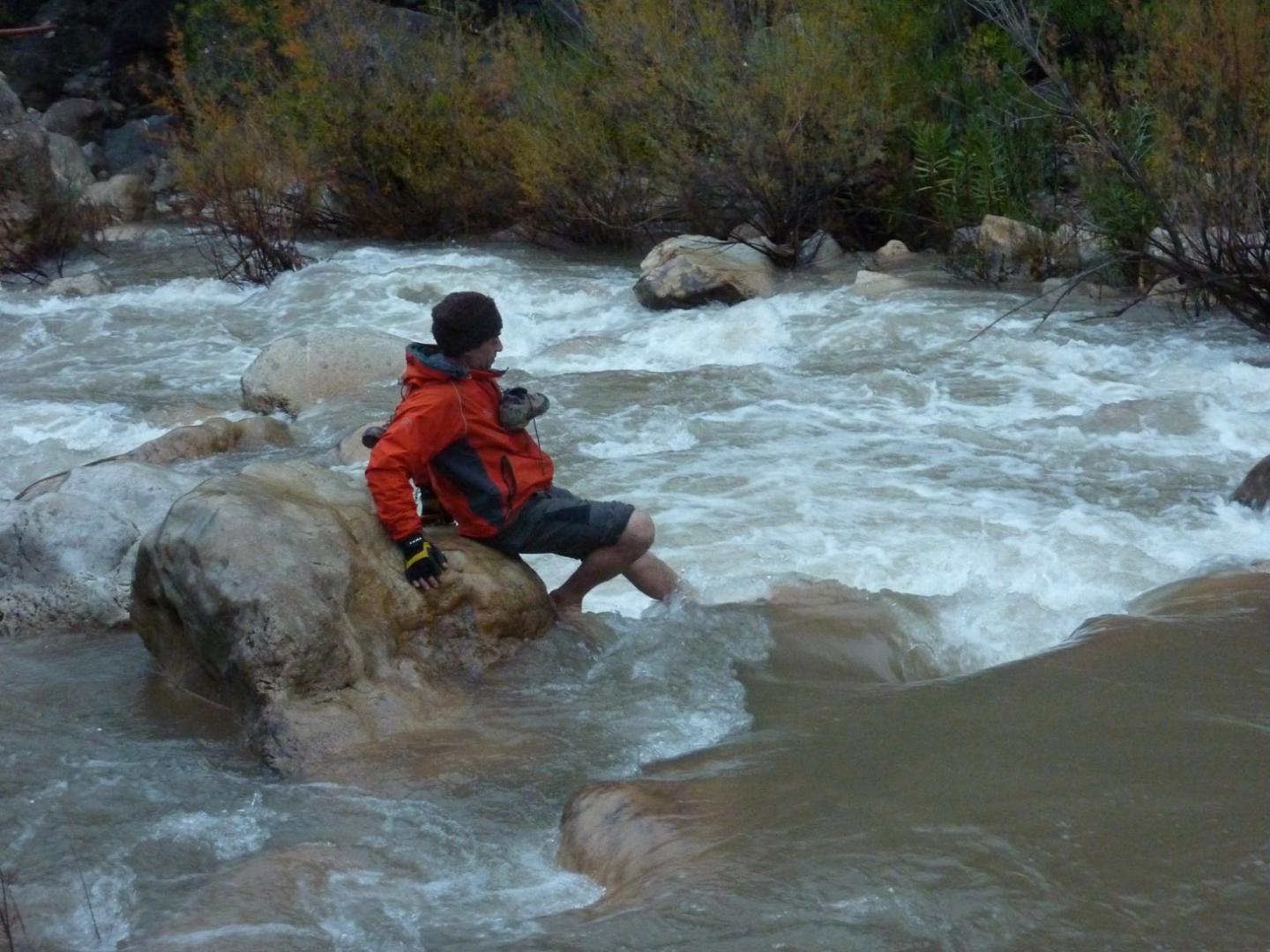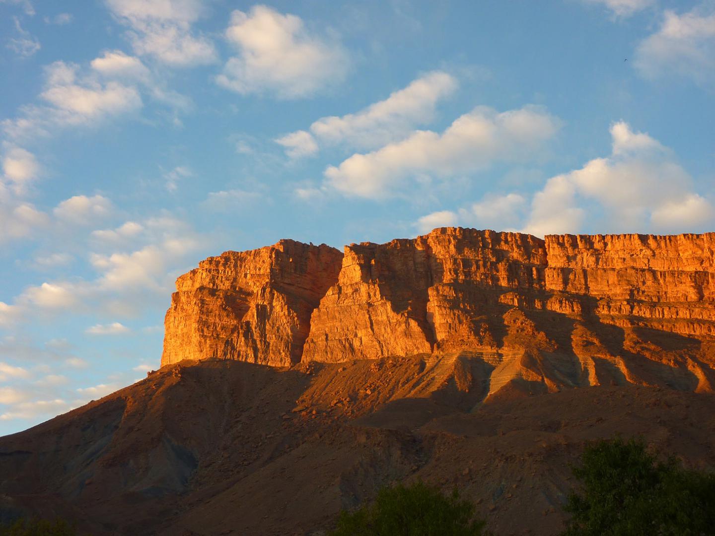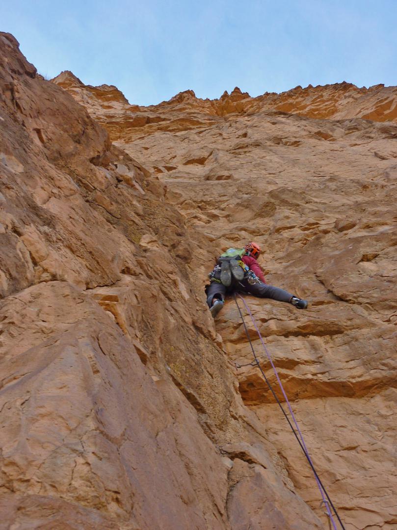 C'est l'occasion de rencontres. ; Ce berger venant vers nous à la nuit tombée septique de la présence de dix légumes dans la poudre d' un sachet de Minut'soup. Là haut sur les flancs du Jbel Ta'abbast il nous montre deux lumières orangées… des feux… des étoiles de berger. La nuit sur les plateaux de l'Atlas, on brule des brindilles, des buissons séchés ; il faut mettre les mains dans la flamme pour sentir la chaleur d'un trop maigre foyer ; on se dispute alors les flancs de la cafetière, sous un festival d'étoiles filantes. Au matin, les lumières de l'Est estompent le givre, puis réchauffent… Nous sommes bien du bon coté de la terre. Nous cherchons à grimper tournés vers le Sud ; voir loin, là où le soleil dessine les courbes des collines, découpe les crêtes, et enflamme les murailles à l'heure des grandes ombres . Les oueds nous ouvrent des corridors pour gagner la paroi… On imagine alors la force de l'eau, la violence des orages de l'Atlas.