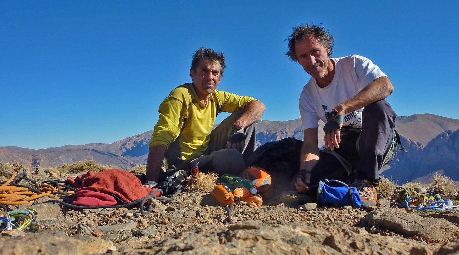 Hassan et Mimoun, grimpent, l'un à Todra, l'autre à Amelago. Ils essayent d'en vivre, espèrent un diplôme marocain. Ils connaissent leur terre, elle est de roc. Autour du thé, ils lèvent un coin de voile sur quelques parois avec juste ce qu'il faut de mystère pour songer déjà à de nouveaux voyages.