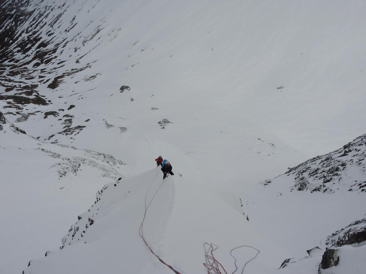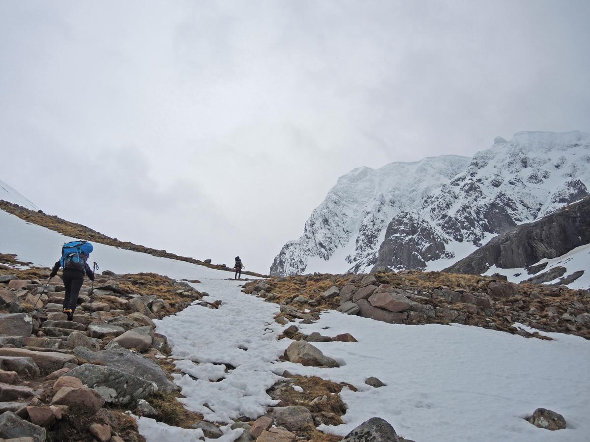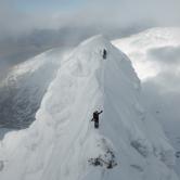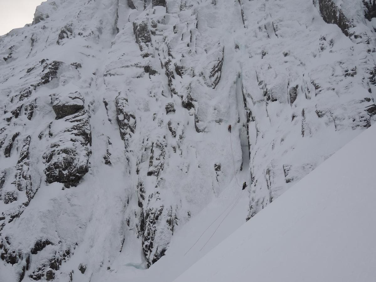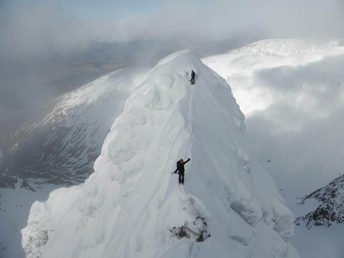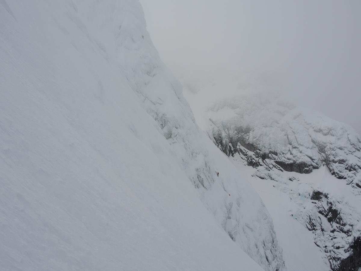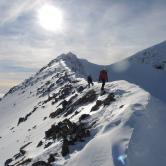 En ce début mars 2014 nous cheminons lourdement charger vers le refuge du Ben Nevis. Déjà le soleil tentait d’écarter les nuages, timide encore mais de plus en plus déterminé. La montagne, elle s’était déjà habillé de sa plus belle matière. Elle était de meringue et de gel. Pendant la nuit, les nuages lassés sans doute de s’acharner sur le Ben, capitulent. Trois jours d’un ciel intensément bleu vont nous accompagner pour gouter aux délices de cette montagne. Le jeudi comme pour nous rappeler que nous avions connu l’exception, nous avons retrouvé l’atmosphère humide et opaque du ciel écossais pour descendre plus tard entre les bourrasques qui faisaient chanceler nos charges. Un beau voyage!