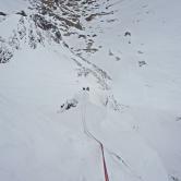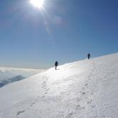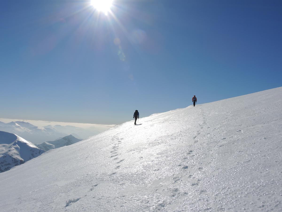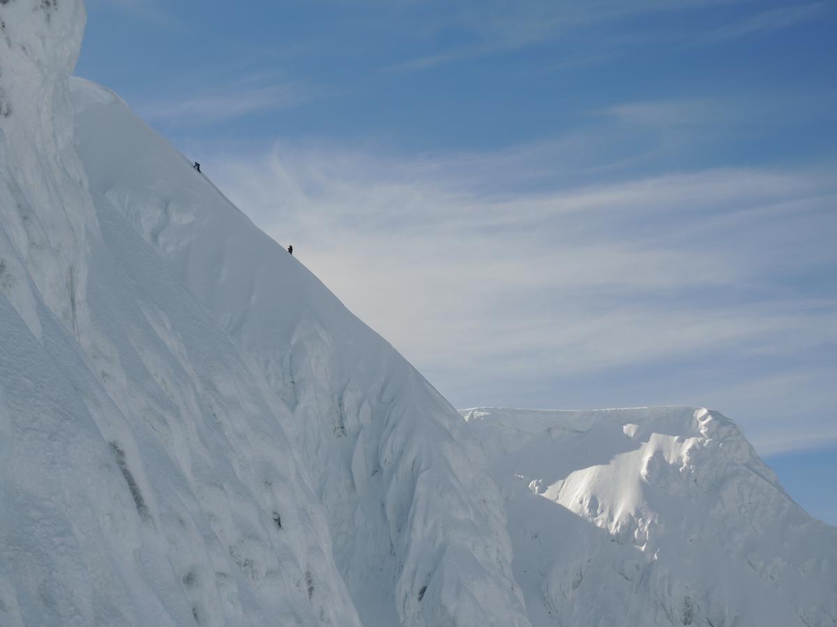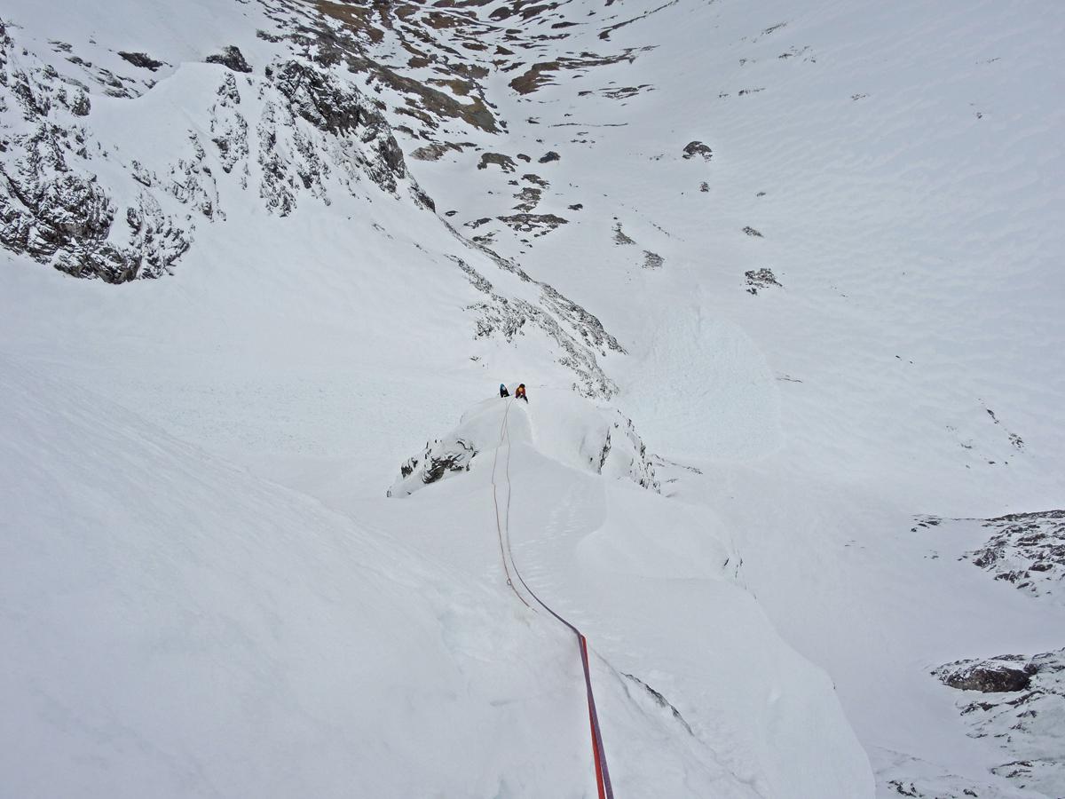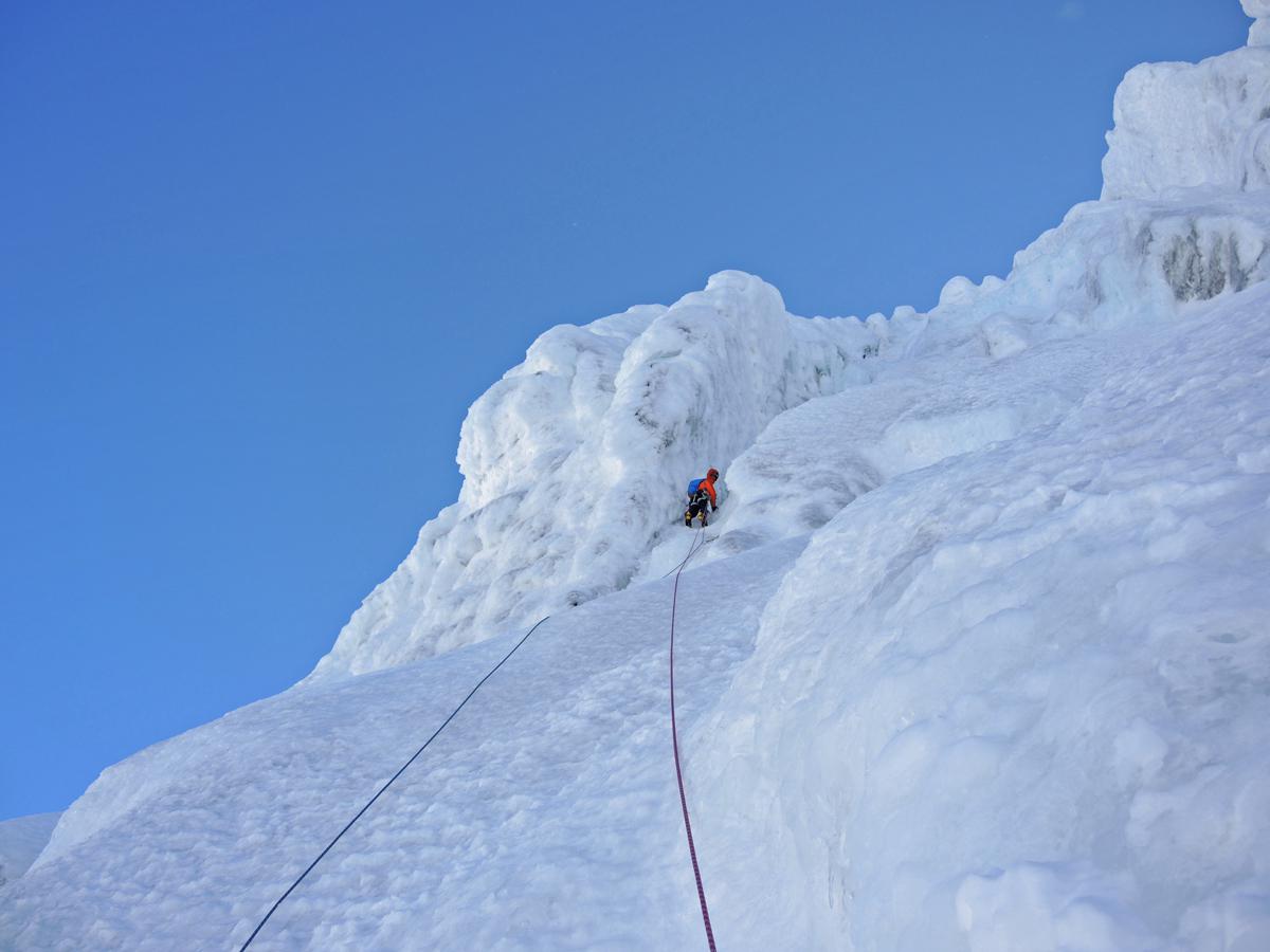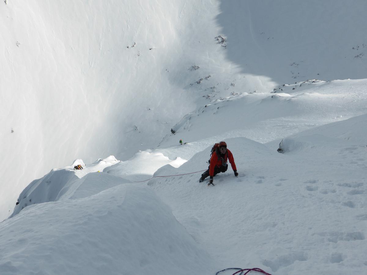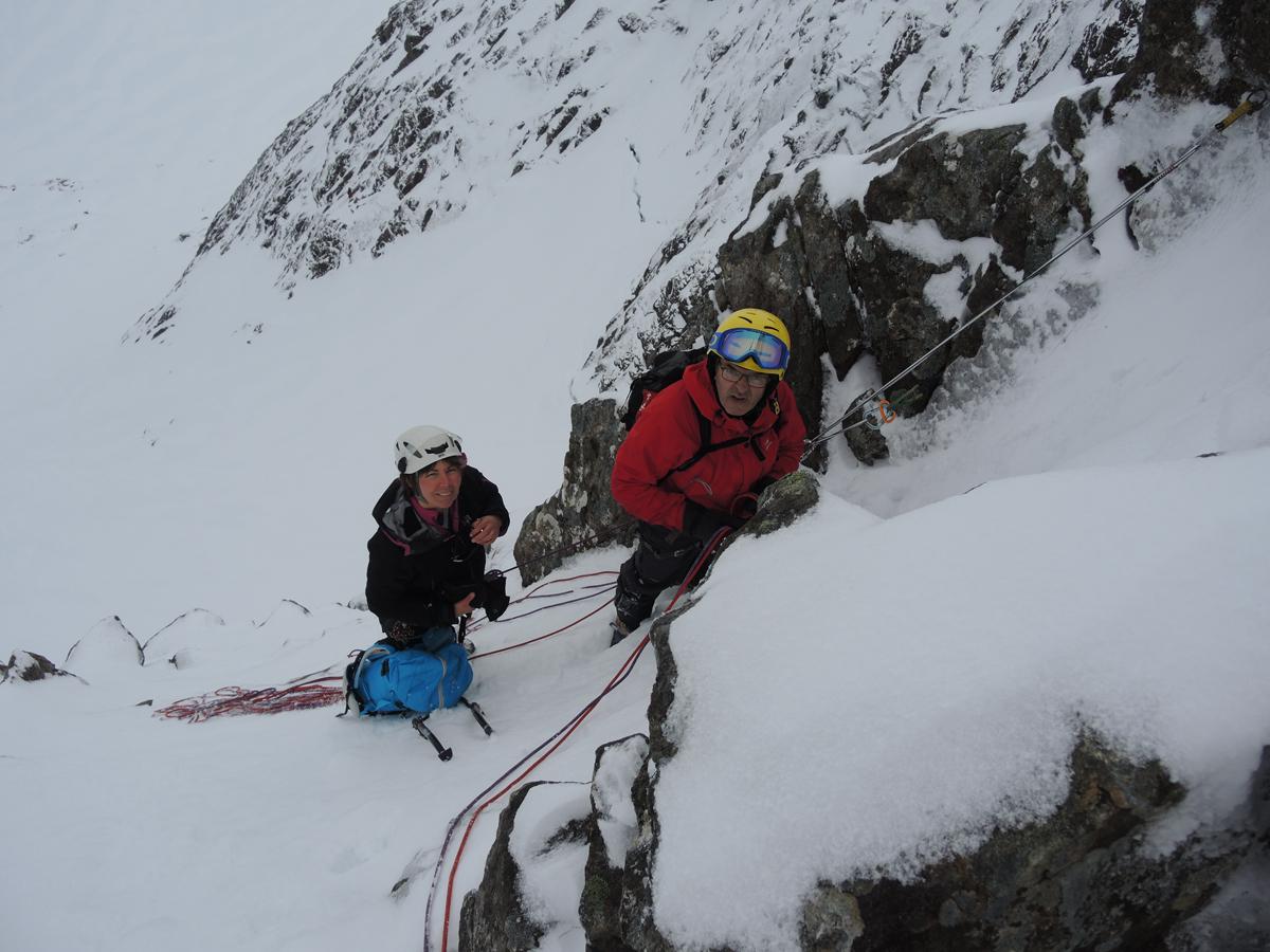 En ce début mars 2014 nous cheminons lourdement charger vers le refuge du Ben Nevis. Déjà le soleil tentait d’écarter les nuages, timide encore mais de plus en plus déterminé. La montagne, elle s’était déjà habillé de sa plus belle matière. Elle était de meringue et de gel. Pendant la nuit, les nuages lassés sans doute de s’acharner sur le Ben, capitulent. Trois jours d’un ciel intensément bleu vont nous accompagner pour gouter aux délices de cette montagne. Le jeudi comme pour nous rappeler que nous avions connu l’exception, nous avons retrouvé l’atmosphère humide et opaque du ciel écossais pour descendre plus tard entre les bourrasques qui faisaient chanceler nos charges. Un beau voyage!