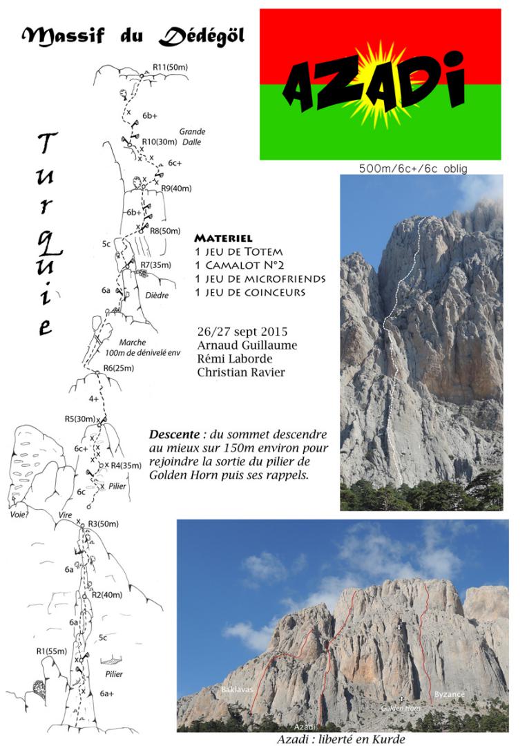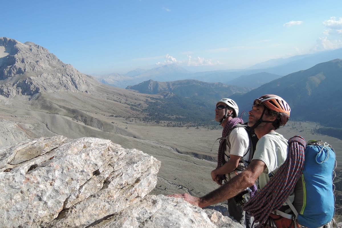 Sur la route, il faut être attentif pour entrevoir les parois du Dédégol ; un bref instant elles se dressent, au Sud entre Aksu et Kalahisar, puis notre parcours s'enfonce dans une vallée étroite de pinèdes abruptes consciencieusement entretenues. À Eldere, le dernier village, la piste entame ses lacets pour nous poser, bientôt, sur un vaste plateau, veillé par les grandes murailles. Elles sont belles ; elles dessinent de longs piliers entre lesquels brillent des miroirs de dalles. Nous repérons vite les quelques itinéraires déjà parcourus et nous savourons l'immense terrain de jeu qui s'offre à nous si le rocher veut bien être de la partie… Et il le sera, de la plus belles des manières, au delà de nos espérances.