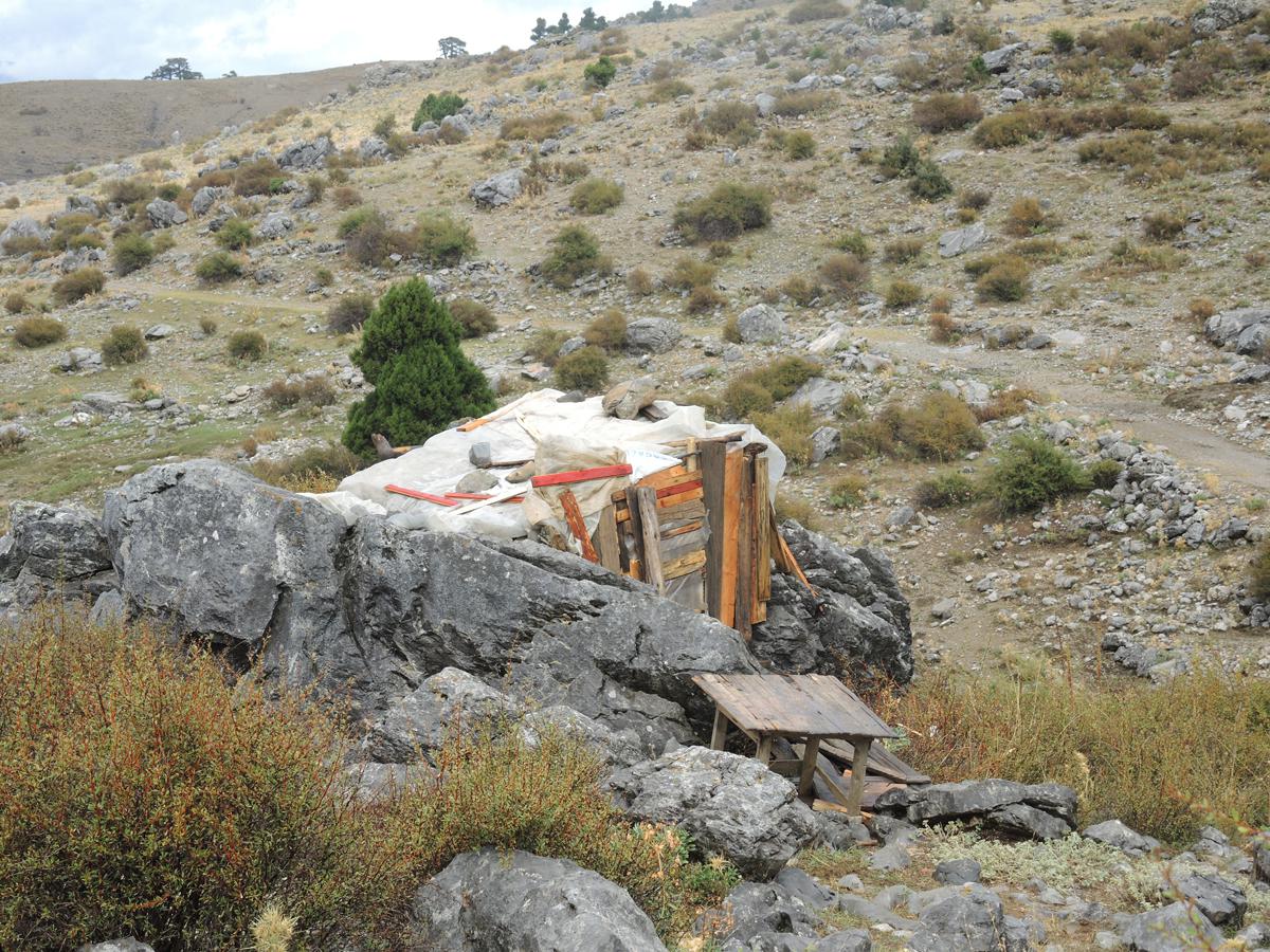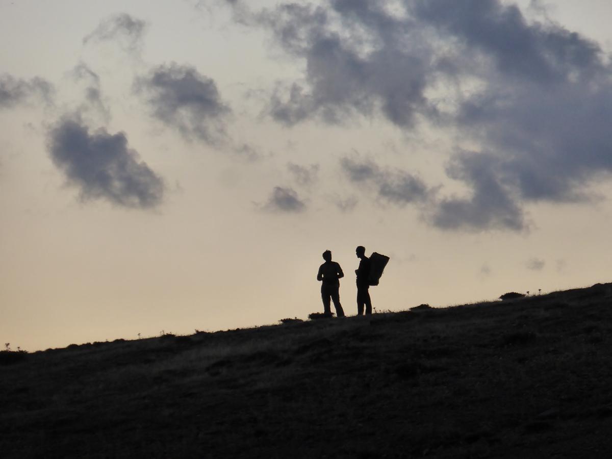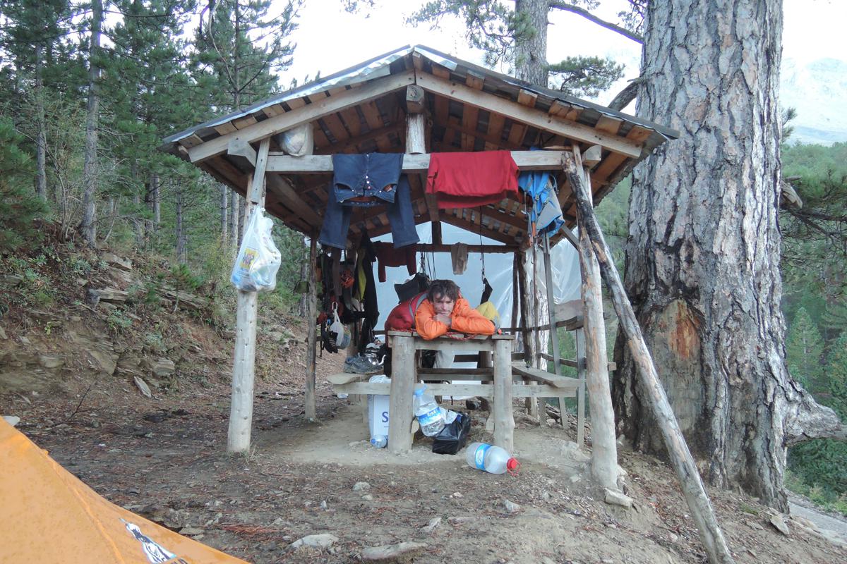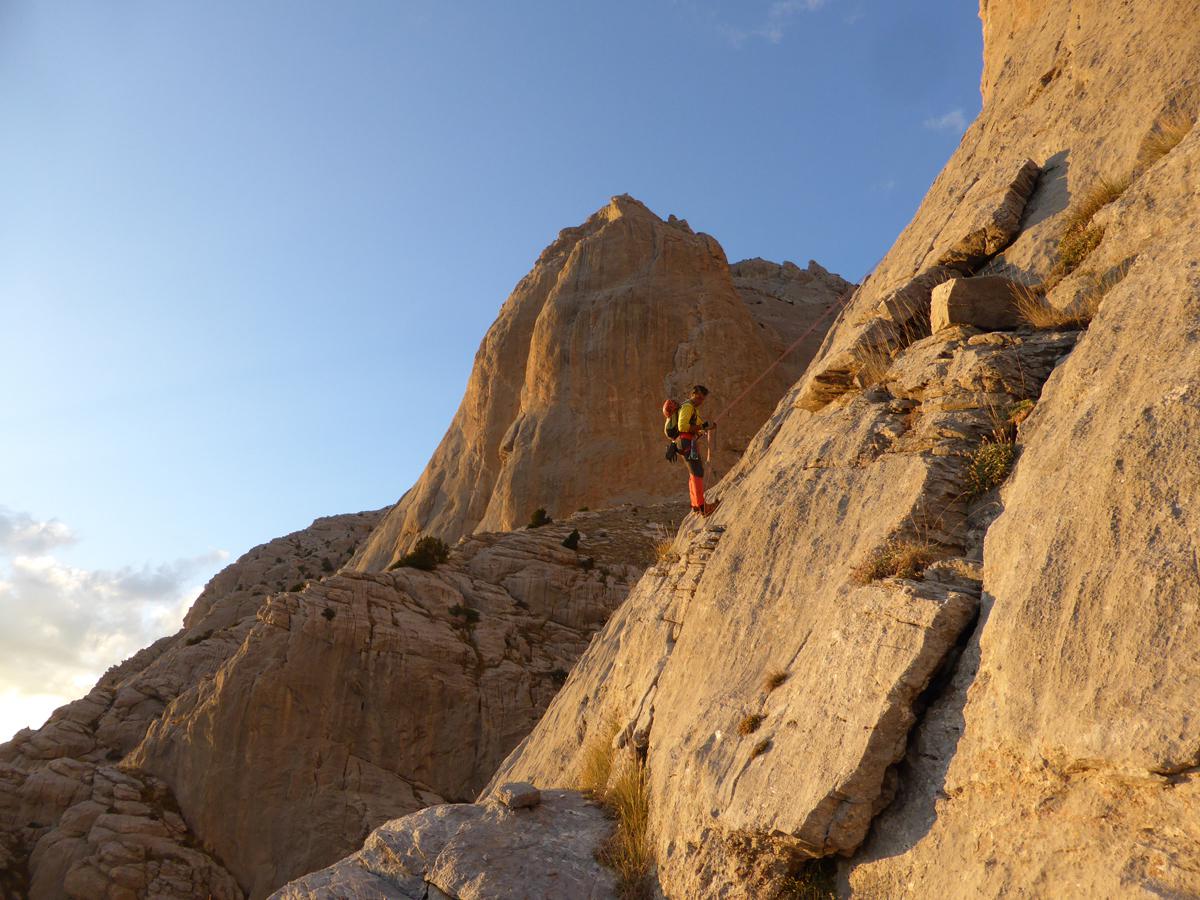 Nous avons trouvé un abris au bord de la piste ; pas de mur, mais un toit, une table, deux bancs et une fontaine… Notre camp de base ; de là nous allons scruter les mouvements du ciel , attendre les premières chaleurs du matin ou devancer le lever du soleil en prévision d'une longue journée. En apprivoisant les parois du Dédégol, nous allons peu à peu oser grimper là où seules auparavant nos jumelles avaient trouvé la voie. De ces errances aventureuses nous garderons longtemps le souvenir des sculptures de la pierre, de ces océans de dalles… de ces surprises qui mènent à la cime. Chaque longueur réserve sa part de plaisir et nous rivalisons de mauvaise foi concernant le respect du tour de rôle pour passer en tête.