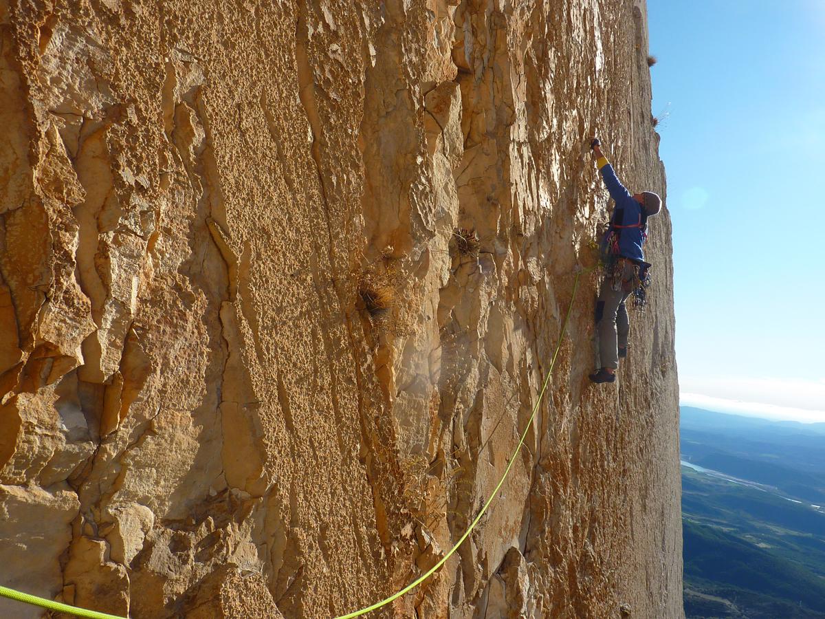 Des Pyrénées, nous avions franchi la crête. Elle était balayée par les affres d’un printemps tourmenté. De l’autre coté, le vent que l’on appelle ici de France s’estompait sur les flancs sud des montagnes. La route vers les sierras d'Aragon ou de Catalogne est souvent marquée par ce contraste de ciel et de paysage. Je voyage dans ces pays de roc. des incroyables Mallos de Riglos aux sentinelles silencieuses de Montserrat en passant par les défilés de la Sierra de Montsech (Terradets, Monrebey), le terrain de jeu est immense pour celui qui aime grimper.