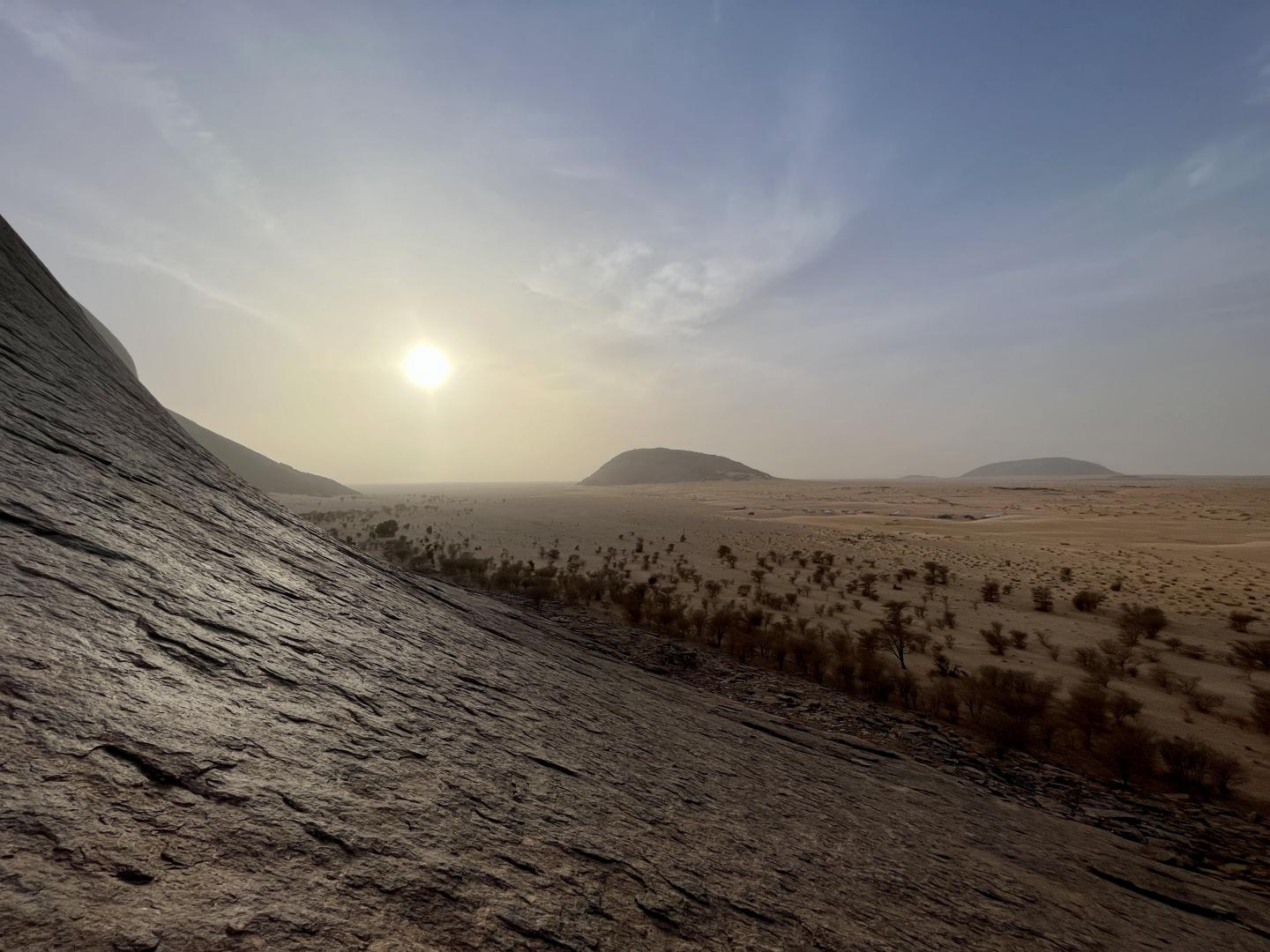 Je découvrais il y a peu de temps, qu’une équipe de grimpeurs avait grimpé en Mauritanie. Au nord de ce pays de déserts de grands dômes de granite dessinaient le paysage. Impassibles, ils vivaient de leur lente érosion et des légendes que les nomades leur portaient. Aujourd’hui, une trentaine de voies remontent les dômes de Ben Amera, l’un des plus grands du monde, d’Aicha et d’Haddada. Les grimpeurs qui ont investi les lieux depuis 2019 ont bien fait les choses en oeuvrant avec les autorités locales, la coopérative « Mauritanidesvoyages », et les habitants du village de Ben Amera ; un camp est aujourd’hui installé au pied du dome de Ben Amera pendant quatre mois de l’année. L’accueil y est des plus chaleureux. A quelques kilomètres de là, le village vit au rythme de l’extraordinaire voie ferrée qui relie les mines de fer de Zouerat au port de Nouadhibou sur près de 700km. Elle amène la vie, l’eau, la nourriture.