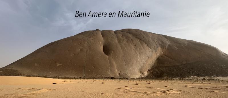 Je découvrais il y a peu de temps, qu’une équipe de grimpeurs avait grimpé en Mauritanie. Au nord de ce pays de déserts de grands domes de granite dessinaient le paysage. Impassibles, ils vivaient de leur lente érosion et des légendes que les nomades leur portaient. Aujourd’hui, une trentaine de voies remontent les domes de Ben Amera, l’un des plus grands du monde, d’Aicha et d’Haddada. Les grimpeurs qui ont investi les lieux depuis 2019 ont bien fait les choses en oeuvrant avec les autorités locales, la coopérative « Mauritanidesvoyages », et les habitants du village de Ben Amera ; un camp est aujourd’hui installé au pied du dome de Ben Amera pendant quatre mois de l’année. L’accueil y est des plus chaleureux. A quelques kilomètres de là, le village vit au rythme de l’extraordinaire voie ferrée qui relie les mines de fer de Zouerat au port de Nouadhibou sur près de 700km. Elle amène la vie, l’eau, la nourriture.