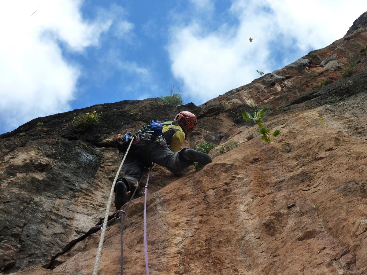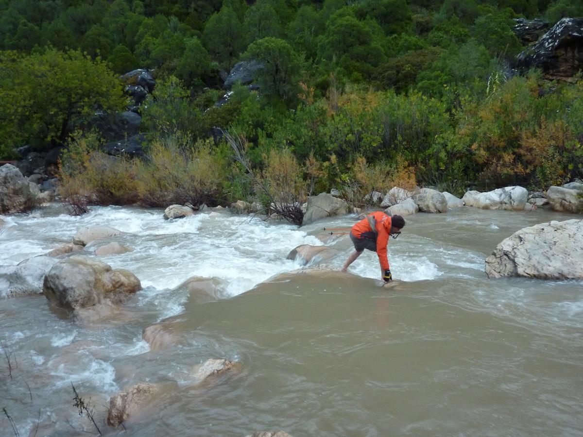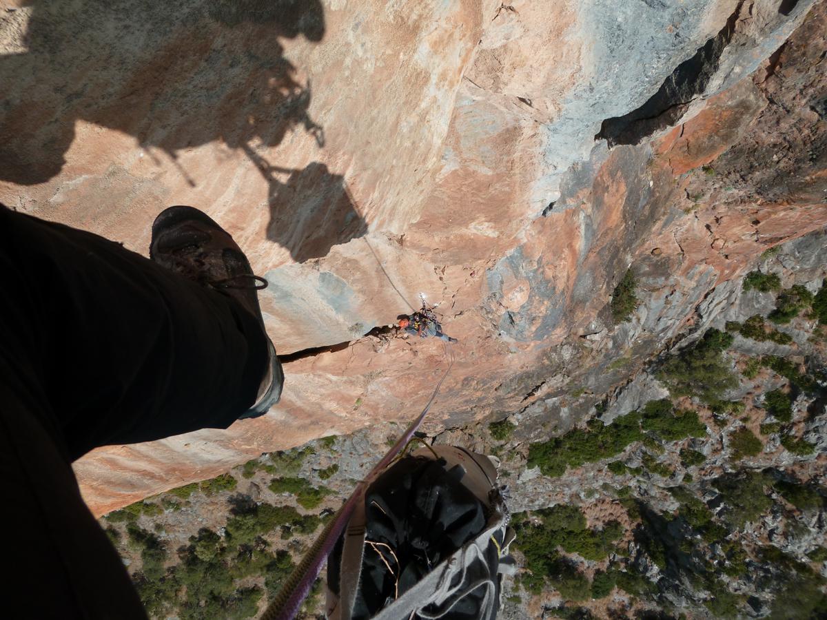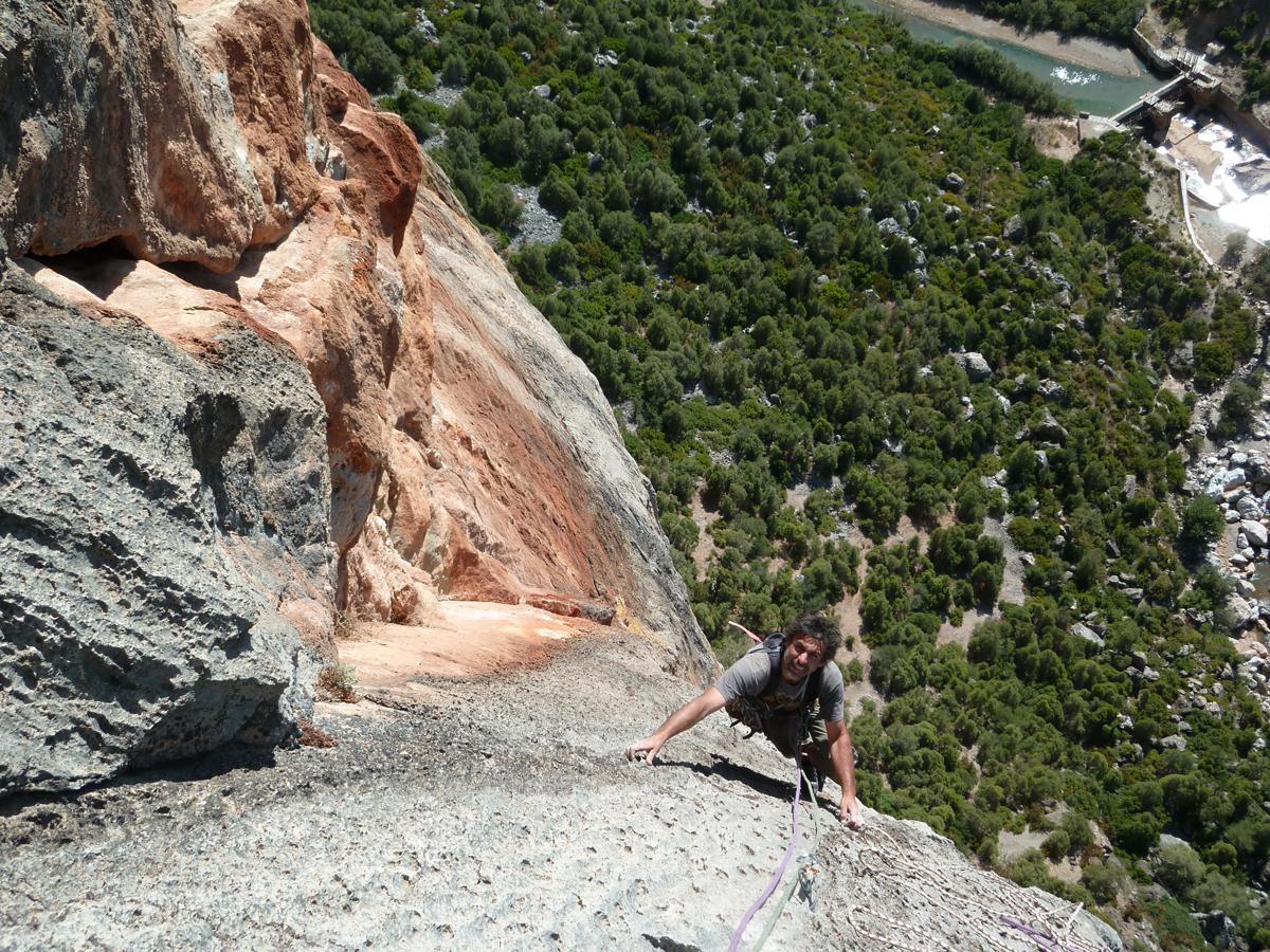 J'ai toujours aimé les montagnes habitées et ici la rencontre avec Abdul, le chef d'orchestre de ce lieu si chaleureux fut un moment fort de notre voyage. Une carrure à la Mohamed Ali, une démarche de grizzli , un air sévère, un air de rifain, qui s'estompe aussitôt que son rire éclate porté par une voix unique rodée et cassée par des nuits trop blanche pour laisser place au sommeil. Abdul aime sa terre et il a envie de voir en elle un autre avenir économique et humain que l'unique manne du Kif… Le "pétrole marocain". Dans cette vallée d'Akchour, l'escalade s'est développé depuis quelques années. De nombreuses petites falaises sont aujourd'hui équipées. Sur la belle et longues paroi de Caïat, quelques voies ont été ouvertes et les possibilités y sont encore nombreuses. Les terrasses du gite d'Abdul sont un observatoire idéal pour révéler, à la faveur des lumières de l'après midi, de nouveaux cheminements. Cette paroi nous allons apprendre à la connaitre, à l'approcher en évitant de se faire lacérer par une végétation souvent sans merci. Alors, enfin, nous allons découvrir ce rocher extraordinairement sculpté qui va nous permettre bien des audaces.
