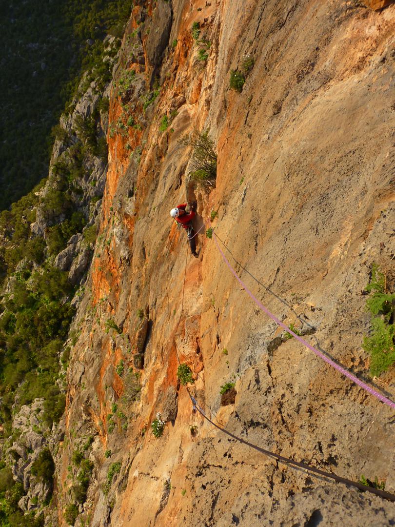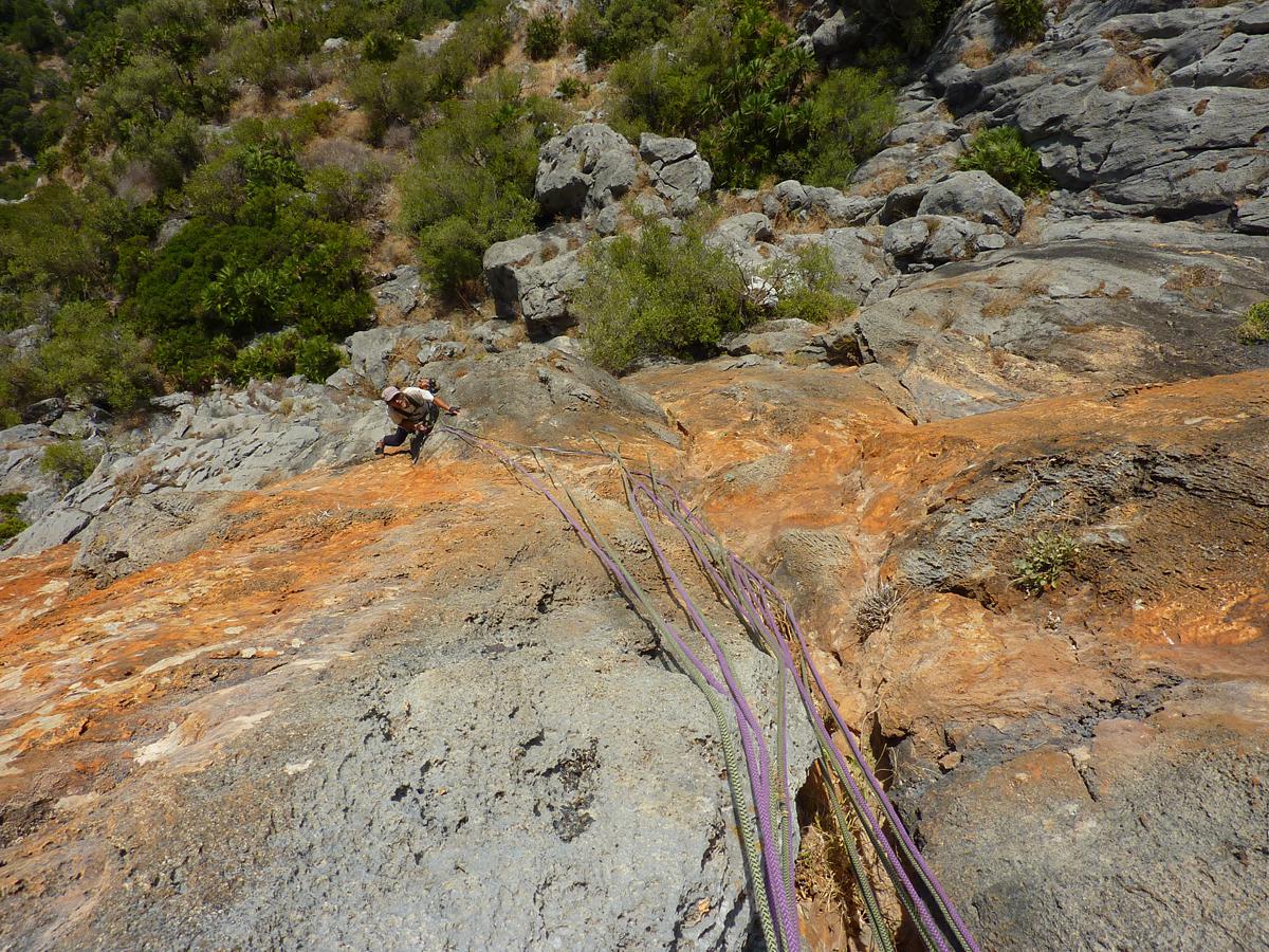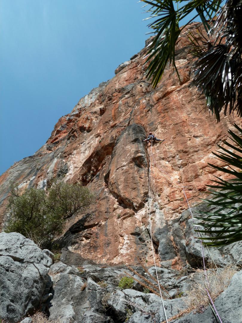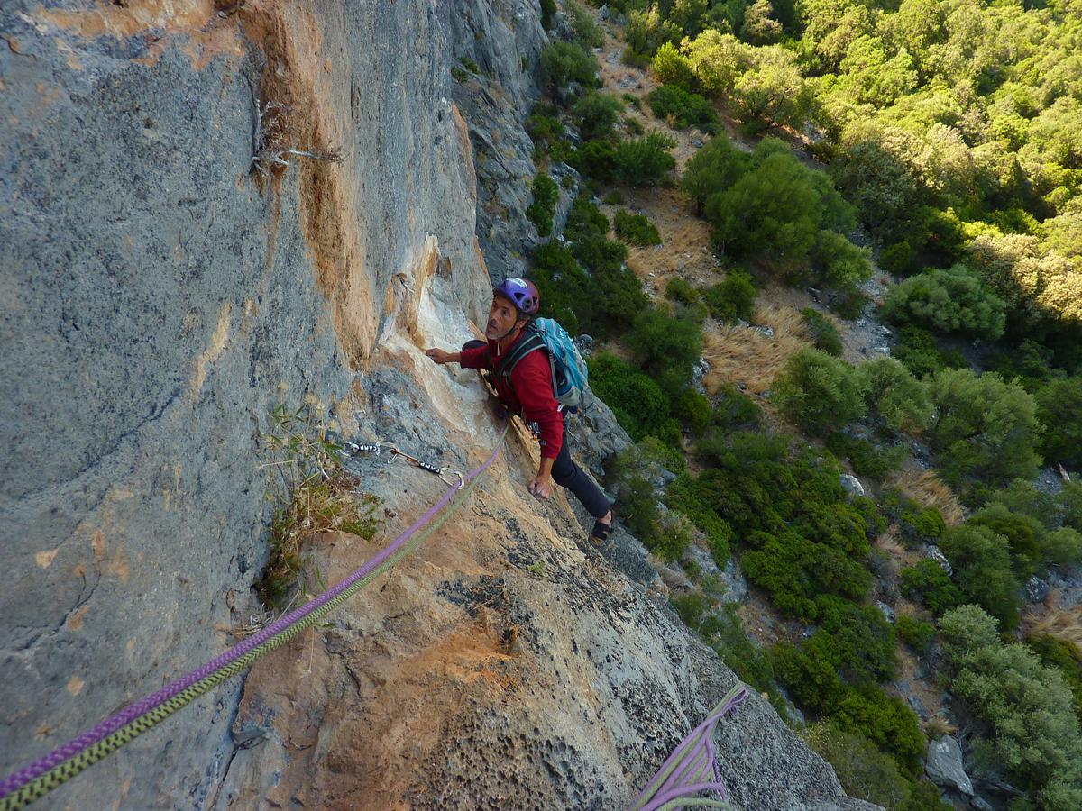 J'ai toujours aimé les montagnes habitées et ici la rencontre avec Abdul, le chef d'orchestre de ce lieu si chaleureux fut un moment fort de notre voyage. Une carrure à la Mohamed Ali, une démarche de grizzli , un air sévère, un air de rifain, qui s'estompe aussitôt que son rire éclate porté par une voix unique rodée et cassée par des nuits trop blanche pour laisser place au sommeil. Abdul aime sa terre et il a envie de voir en elle un autre avenir économique et humain que l'unique manne du Kif… Le "pétrole marocain". Dans cette vallée d'Akchour, l'escalade s'est développé depuis quelques années. De nombreuses petites falaises sont aujourd'hui équipées. Sur la belle et longues paroi de Caïat, quelques voies ont été ouvertes et les possibilités y sont encore nombreuses. Les terrasses du gite d'Abdul sont un observatoire idéal pour révéler, à la faveur des lumières de l'après midi, de nouveaux cheminements. Cette paroi nous allons apprendre à la connaitre, à l'approcher en évitant de se faire lacérer par une végétation souvent sans merci. Alors, enfin, nous allons découvrir ce rocher extraordinairement sculpté qui va nous permettre bien des audaces.