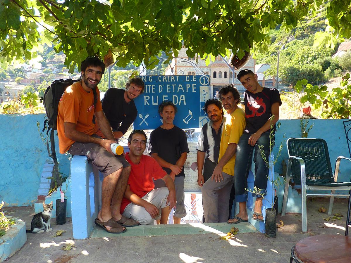 Une fois de plus, nous avons franchi les Pyrénées et traversé la Peninsule Iberique comme des flèches. Au nord du Maroc, au coeur du Rif, il y avait une paroi. Sur des photos elle paraissait belle. Nous allions lui rendre visite. Sur les routes marocaines les croisements sont des lieux de vie, de rencontres. On y attend un bus, un taxi ; on y trouve parfois un petit café, une épicerie. A l'entrée de Talembote, à la croisée de chemins, Le refuge café de la Rueda est de ceux là.