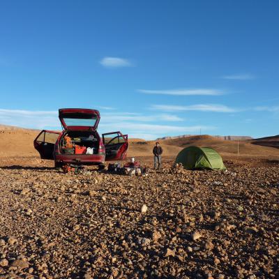 Quelques photos d'un défilé où l'on distinguait des parois suffisamment hautes pour susciter notre intérêt ont suffit comme prétexte pour aller gouter aux nuits sans fin du mois de décembre versant sud de l'Atlas. À Taghia, dans le Rif, ou à Tafraoute j'ai souvent regretté de ne pas être plus itinérant ; passer du bon temps autant à grimper qu'à tailler la route ; continuer à découvrir le pays des Berbères.