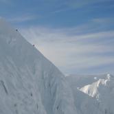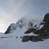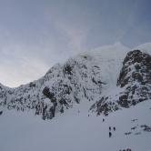 En ce début mars 2014 nous cheminons lourdement charger vers le refuge du Ben Nevis. Déjà le soleil tentait d’écarter les nuages, timide encore mais de plus en plus déterminé. La montagne, elle s’était déjà habillé de sa plus belle matière. Elle était de meringue et de gel. Pendant la nuit, les nuages lassés sans doute de s’acharner sur le Ben, capitulent. Trois jours d’un ciel intensément bleu vont nous accompagner pour gouter aux délices de cette montagne. Le jeudi comme pour nous rappeler que nous avions connu l’exception, nous avons retrouvé l’atmosphère humide et opaque du ciel écossais pour descendre plus tard entre les bourrasques qui faisaient chanceler nos charges. Un beau voyage!