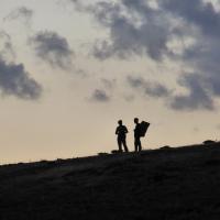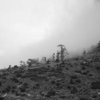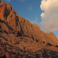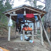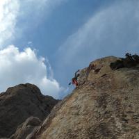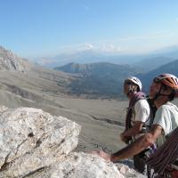 Nous avons trouvé un abris au bord de la piste ; pas de mur, mais un toit, une table, deux bancs et une fontaine… Notre camp de base ; de là nous allons scruter les mouvements du ciel , attendre les premières chaleurs du matin ou devancer le lever du soleil en prévision d'une longue journée. En apprivoisant les parois du Dédégol, nous allons peu à peu oser grimper là où seules auparavant nos jumelles avaient trouvé la voie. De ces errances aventureuses nous garderons longtemps le souvenir des sculptures de la pierre, de ces océans de dalles… de ces surprises qui mènent à la cime. Chaque longueur réserve sa part de plaisir et nous rivalisons de mauvaise foi concernant le respect du tour de rôle pour passer en tête.