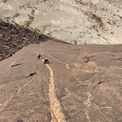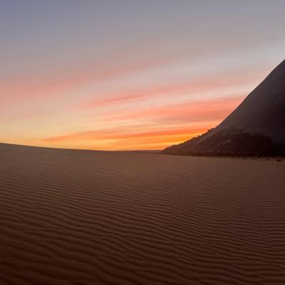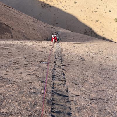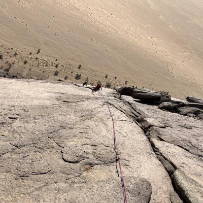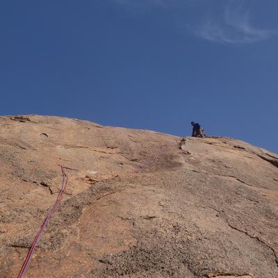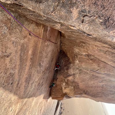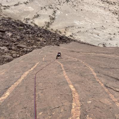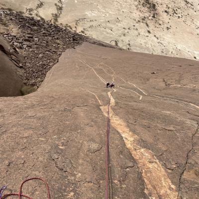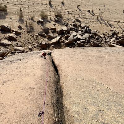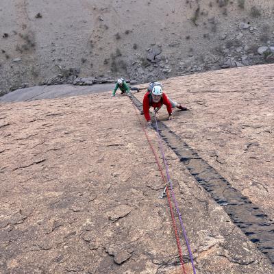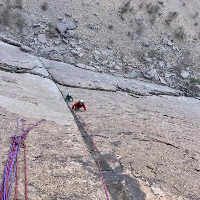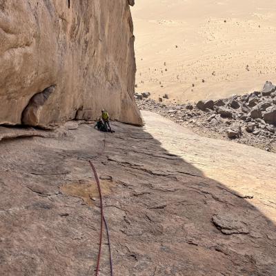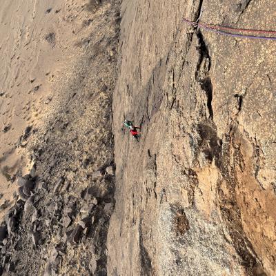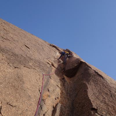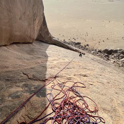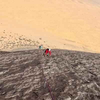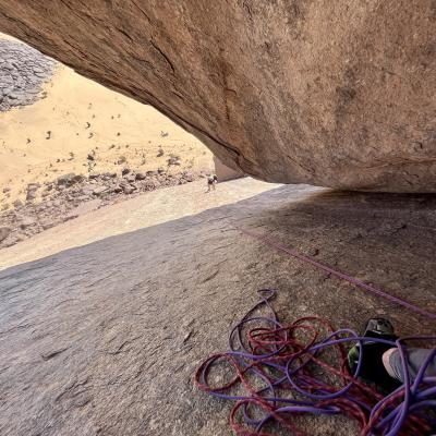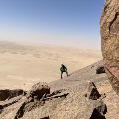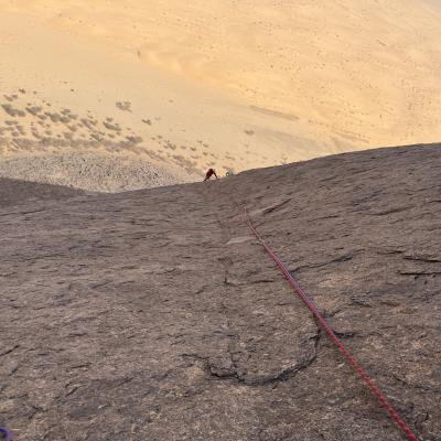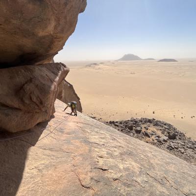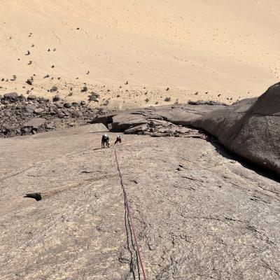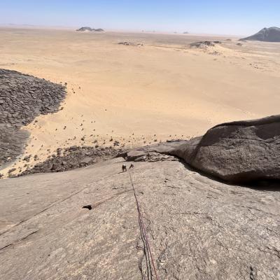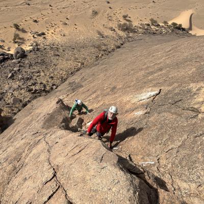 Je découvrais il y a peu de temps, qu’une équipe de grimpeurs avait grimpé en Mauritanie. Au nord de ce pays de déserts de grands dômes de granite dessinaient le paysage. Impassibles, ils vivaient de leur lente érosion et des légendes que les nomades leur portaient. Aujourd’hui, une trentaine de voies remontent les dômes de Ben Amera, l’un des plus grands du monde, d’Aicha et d’Haddada. Les grimpeurs qui ont investi les lieux depuis 2019 ont bien fait les choses en oeuvrant avec les autorités locales, la coopérative « Mauritanidesvoyages », et les habitants du village de Ben Amera ; un camp est aujourd’hui installé au pied du dome de Ben Amera pendant quatre mois de l’année. L’accueil y est des plus chaleureux. A quelques kilomètres de là, le village vit au rythme de l’extraordinaire voie ferrée qui relie les mines de fer de Zouerat au port de Nouadhibou sur près de 700km. Elle amène la vie, l’eau, la nourriture.