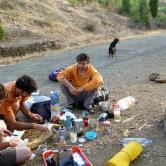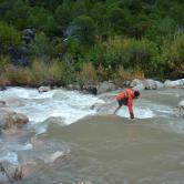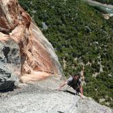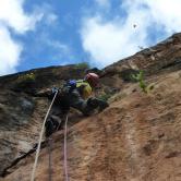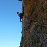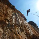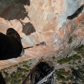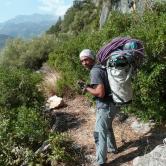 J'ai toujours aimé les montagnes habitées et ici la rencontre avec Abdul, le chef d'orchestre de ce lieu si chaleureux fut un moment fort de notre voyage. Une carrure à la Mohamed Ali, une démarche de grizzli , un air sévère, un air de rifain, qui s'estompe aussitôt que son rire éclate porté par une voix unique rodée et cassée par des nuits trop blanche pour laisser place au sommeil. Abdul aime sa terre et il a envie de voir en elle un autre avenir économique et humain que l'unique manne du Kif… Le "pétrole marocain". Dans cette vallée d'Akchour, l'escalade s'est développé depuis quelques années. De nombreuses petites falaises sont aujourd'hui équipées. Sur la belle et longues paroi de Caïat, quelques voies ont été ouvertes et les possibilités y sont encore nombreuses. Les terrasses du gite d'Abdul sont un observatoire idéal pour révéler, à la faveur des lumières de l'après midi, de nouveaux cheminements. Cette paroi nous allons apprendre à la connaitre, à l'approcher en évitant de se faire lacérer par une végétation souvent sans merci. Alors, enfin, nous allons découvrir ce rocher extraordinairement sculpté qui va nous permettre bien des audaces.